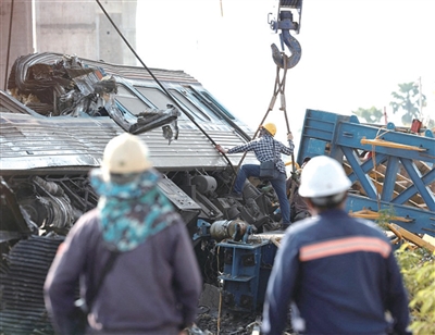 当地时间1月14日上午,泰国呵叻府一台起重机在高铁项目施工过程中坠落,砸中一列正在行驶中的火车,导致车厢起火并脱轨。总台记者获悉,事故已造成32人死亡、67人受伤。