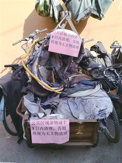 西湖区庆丰社区回复:橙友的建议已收悉。物业在上周五已经张贴了相关告示,要求公共区域杂物于3日内清理,否则将视为无主物清理。还没有人认领的杂物,到时物业会清理到集中堆放自行车的地方。