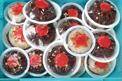 最近杭州街头,充满年味的“八宝饭”也上市了。昨天,记者在大马弄看到有摊主卖起了湖州八宝饭,分血糯米和白糯米两种,大份的16元,小份的13元;中山中路上的江南春糕团店,最近上新了两种八宝饭,其中白糯米饭里中间是豆沙馅,米饭上面还有金橘、枸杞、瓜子仁、核桃仁等果料,大的12元一盒,小的是分量更小的两个饭团一组,价格8元;衢江路上的知味观门店里,除了传统的血糯八宝饭和新春八宝饭之外,今年还新增加了“奶油鲜花八宝饭”,一盒包括玫瑰鲜花、芋泥桂花和茉莉鲜花三种口味,此外还有“缤纷水果八宝饭(芝士味)”,记者研究了一下配料表,里面应该有凤梨、黄桃、蔓越莓等。传统的八宝饭也推出了新“花头”,你会想要试试这些新口味吗?