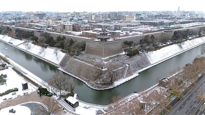 1月20日,随着西安火车站段859米暗涵改造完成,西安护城河水系70余年来首次全线贯通。这条始凿于唐末、明代定型的千年水系,终于完成闭环,“城河相拥、碧水绕城”的盛景重现古城西安。西安护城河是位于西安市明城墙外侧的环形人工河,与西安城墙共同构成城防体系,现为兼具生态景观、蓄洪滞洪功能的国家水利风景区。图为西安城墙东南角下的护城河。