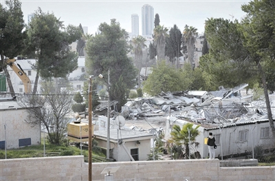 以色列土地管理局人员当天早上在警方陪同下进入近东救济工程处的办公大院,用工程机械拆毁院内建筑和设施。