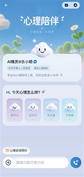 由杭州市卫健委牵头打造,浙江大学医学院附属精神卫生中心(杭州市第七人民医院)骆宏教授参与研发了青少年AI同伴心理咨询数字人“青少年心理健康服务智能体”,围绕提供陪伴和倾听,构建涵盖睡眠、运动、专注等维度的情绪识别模型,提供“AI识别+热线介入+人工干预”三级服务,可实现“早识—早聊—早辅—早联—早转”全流程支持。