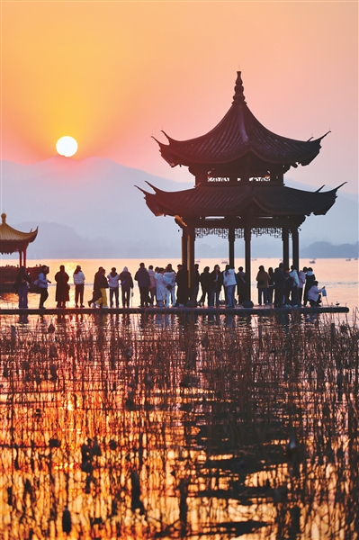 西湖落日 记者 江玥 摄