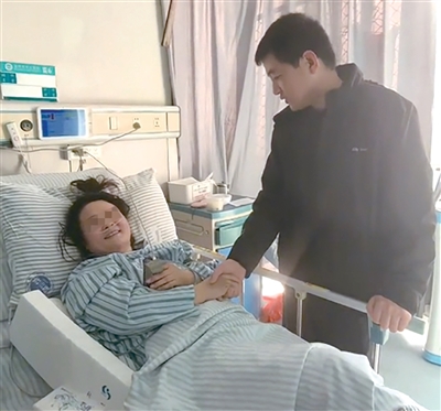 昨天下午,周新利和温州管理中心同事一起去医院看望了这位女士。住院楼电梯口,看到周新利,被救女士的姐姐哭了。