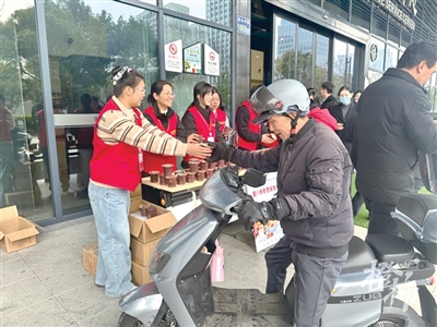 昨天一早,马翔坐地铁赶往萧山政务服务中心发腊八粥。“发放现场很热闹,一上午我这个点就发了15箱,大概四五百杯。和我一组发腊八粥的还有个女孩子,在武汉读大学,名叫沈欣怡,小姑娘到得比我还早,听她说还要在杭州参加志愿服务。”