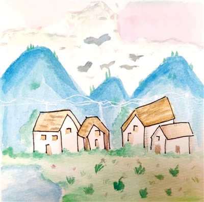 插画狮:《春拂此村》 杭州市星洲第二小学四(1)班 陈芊淇
