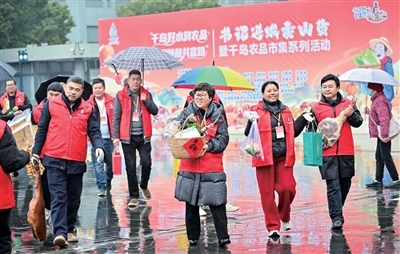 跑了那么多年的“书记进城卖山货”现场,我们也是第一次赶了个“冬雨场”,琳琅满目的山货令记者目不暇接:千岛湖土猪肉、汾口腊肉、瑶山山核桃、临岐黄精、石林日晒面、富文土烧、里商茶叶、安阳玉米粿、威坪威酱、浪川中华鳖、界首橘子、宋村活鱼、梓桐草莓、枫树岭地瓜干……