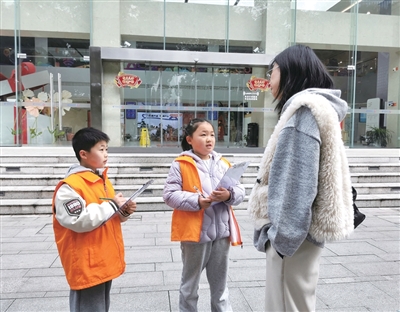 在武林广场上,面对来来往往的市民,小记者一开始有些胆怯,不敢迈出第一步与陌生人对话,但经过一次又一次尝试,终于大胆地问出了第一个问题,并逐渐能够与对方自然地沟通。