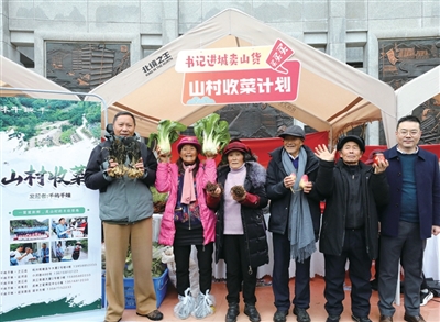 书记进城卖山货特设“山村收菜计划”摊位,来自左口乡官田村大山里的4位老人也来到现场吆喝山里的农产品。记者 周涛 摄