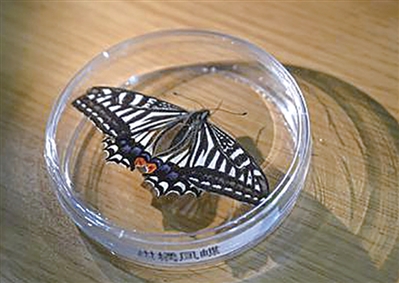 科研人员展示蝴蝶标本