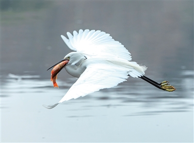 茅家埠,白鹭捕鱼。 记者 陈中秋 摄