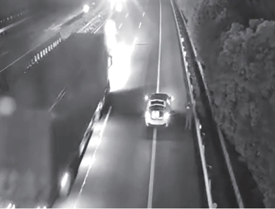 上午8时20分左右,杭新景高速建德服务区入口处,一辆黑色小车从二车道轧着白线往服务区驶去。从监控看到,这辆黑色小车往前行驶了十几米后,停在了入口车道上,没一会儿,车又一把方向往高速公路主线行驶。