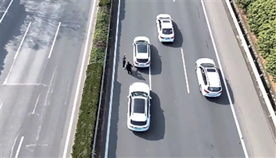 发现警情后,巡查无人机立即下降高度并喊话,引导两车就近下高速接受处理。
