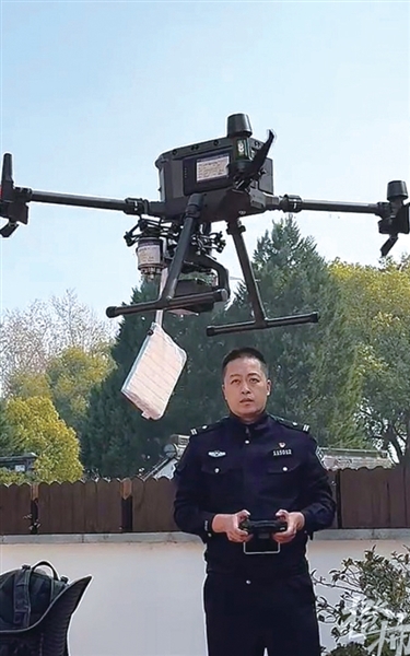 “无人机本身搭载了空投器,原本是用来空投灭火包、急救物资的,目前我们也在拓展探索它的便民服务功能。”