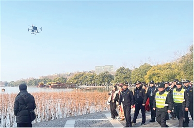 西湖景区公安分局相关负责人表示,春节就要来临,西湖景区将迎来客流高峰,无人机巡逻、查处、运送等工作将持续开展,与民辅警一起,24小时在岗守护服务。