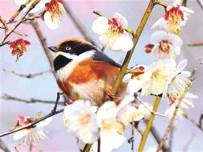 鸟儿探梅(上)樱(下) 橙友“辰曲16” 摄