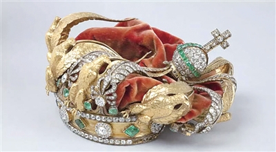 法国卢浮宫博物馆2月5日表示,去年10月被盗走的法国皇后欧仁妮皇冠虽已严重变形,但馆方评估,皇冠仍“近乎完整”,可在“无须重建”下恢复原貌。卢浮宫博物馆将公开征选一名专家负责修复。皇冠是在窃贼试图从玻璃罩子上割出的小洞取出时被毁坏的,上面镶嵌的56颗翡翠还在,但环绕皇冠的八只镶金老鹰丢失了1只,1354颗钻石也掉了10颗。4名窃贼都已落网,但除了逃跑途中丢弃的皇冠,其他总值8800万欧元的失窃珠宝仍不见踪影。