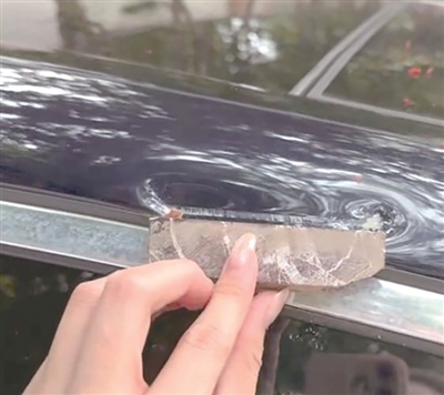 掉落砖块砸中张女士的车