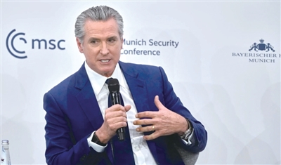 当地时间2月13日,美国加利福尼亚州州长加文·纽森在第62届慕尼黑安全会议上公开批评总统特朗普言行幼稚。