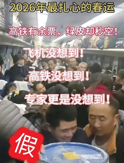 2月15日晚,中国铁路发文:经中国国家铁路集团有限公司客运中心组织技术分析和专家鉴定,网传2026年春运绿皮车严重超员、人满为患的视频,大部分为历史画面拼凑翻炒、部分系AI生成的不实信息。2026年春运,铁路部门严控列车超员、不断改进服务,保持了普速列车开行品质的稳定。