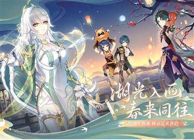 年味不仅在游戏中,还走进了现实。今年,《原神》与杭州西湖携手打造沉浸式体验活动,还原璃月港的灯笼街市,挂上了玩家熟悉的霄灯,古风展陈与湖光山色相映成趣。不少玩家身着游戏角色服饰前来打卡,在灯笼下许愿,仿佛真的走进了璃月的新春盛景。
