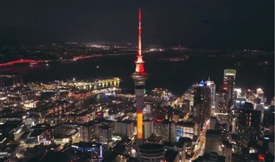 为庆祝中国农历马年新春,“万马奔腾”旅游推介系列活动日前在新西兰奥克兰市地标建筑天空塔举行。本次活动的一大亮点是“万马奔腾”艺术光影秀,总计呈现了16幅以生肖“马”为主题的艺术作品。中央广播电视总台马年春晚主题和主标识也亮相天空塔。