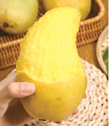 来自海南的金煌芒,一口下去咬不到核,满嘴都是果肉,果核像一元硬币那么薄。