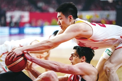 中国队球员朱俊龙(上)在比赛中拼抢 据新华社