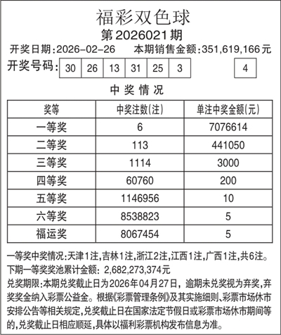 福利彩票开奖公告