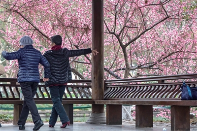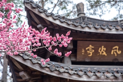 西湖圣塘景区内的风波亭旁,梅花盛开。本版摄影 记者 陈中秋
