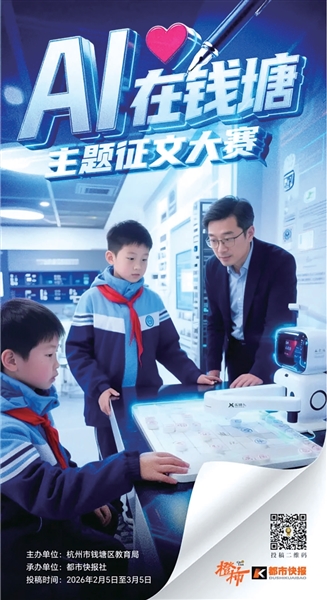 2月5日到3月5日,都市快报社和杭州市钱塘区教育局联合发起“AI在钱塘”主题征文活动。征文要求钱塘区小学、初中和高中学生围绕这个主题,从两方面入手写作都可以,既可以书写你眼中的人工智能课程,也可以书写你所体味到的校园里的温暖和爱。小学生600字以内,中学生800字以内。