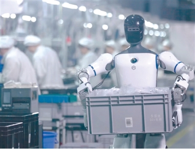 人形机器人在生产线上搬运物料 国家机器人检测与评定中心供图