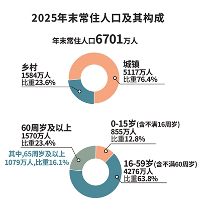 常住人口6701万,比上年增加31万