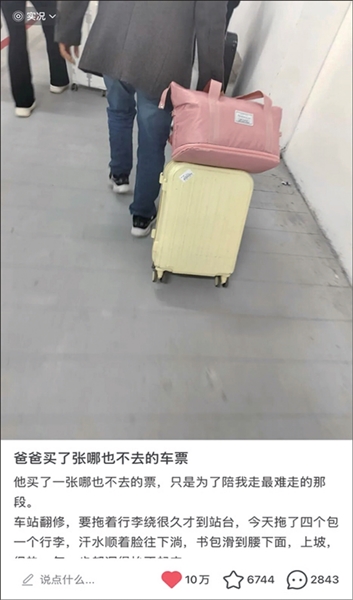 “父亲买了张哪儿也不去的车票,只是为了陪我走难走的那段路。”3月1日,四川的范同学发在社交平台的这篇帖子引发诸多网友共鸣。