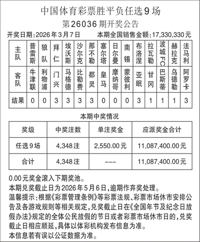 体彩胜平负任选9场