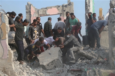 救援人员在女子小学废墟中搜寻
