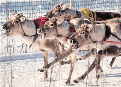 最终,一只名叫“朋朋”的驯鹿赢得了决赛。它和它的驯鹿伙伴们都吃到了最喜欢的食物——地衣。