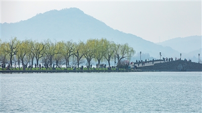 昨天上午,西湖边春柳依依。 记者 陈中秋 摄