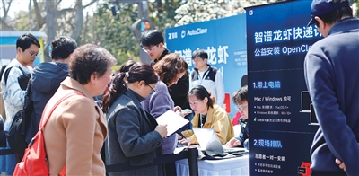 当天,一家名为“智谱”的杭州企业在湖滨步行街“摆摊”,免费帮市民安装OpenClaw(龙虾)。