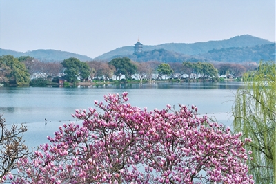晴到多云的好天气会持续到周日,非常适合出门踏青赏花。杭州西湖国宾馆的“粉玉兰女王”眼下正值最佳观赏期。这棵60年树龄的粉色二乔玉兰被誉为“杭州玉兰天花板”,盛花期就在这几天。粉霞般的花朵与苏堤、雷峰塔相映成趣,想去看它的朋友,3月15日之前记得先在西湖国宾馆公众号预约。
