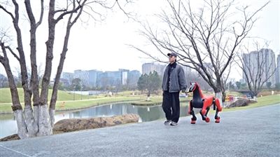 通体中国红涂装,四只蹄子不是四足机器人常见的圆滚滚的“脚垫”,而是仿生马蹄。