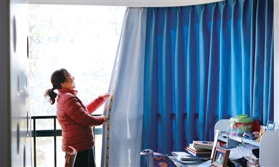 11点30分,最后一户的窗帘挂好了。阳光透过干净的布料洒进来,屋里亮堂了许多。葛阿姨站在窗边看了又看,高兴得合不拢嘴,不停地说着“谢谢”。