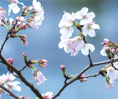 樱花的进度条好不容易有了点新进展,会被雨水按下暂停键吗?樱花的花期较短,整棵樱树从花朵初绽到全谢仅有两周时间。雨水对樱花的影响,关键取决于樱花是否已经开放。如果本身已经开放多日,遇到降雨,确实会有一部分花瓣掉落,但整体仍可以观赏几天。如果还处在零星开放阶段的话,降雨对樱花绽放影响不大,真正影响花期节奏的反而是气温。气温高,则花期较短;气温较低,反倒会成为樱花的“保鲜剂”,有利于延长花期。
