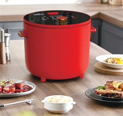高级红配玻璃黑的超高颜值,有6段“聪明火”,能精准控压控温,让煮出来的米饭松、糯、香。