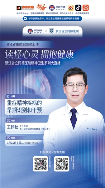 “重症精神疾病并不是突然发作的疾病,不少患者在发病初期,就已经出现了明显的异常。但因为对疾病缺乏认识,家属常误认为是性格问题或者是情绪不好,从而耽误了早诊早治。”浙江省立同德医院精神卫生科主任王鹤秋主任医师指出,及时发现早期信号,尽早规范治疗,可以大幅度减少疾病带来的伤害。