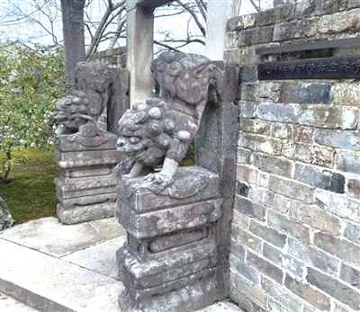 记者来到西溪湿地邬家湾,在“江南明清古建筑博物馆”门口,找到橙友拍的这对石狮。