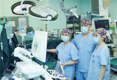 浙大二院麻醉手术部主任严敏教授(左一)团队开展术中经食道超声监测