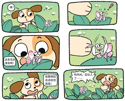“这朵花好漂亮啊!”溜达达想着,要把小花摘回去送给朋友悠哉哉。