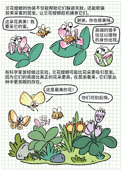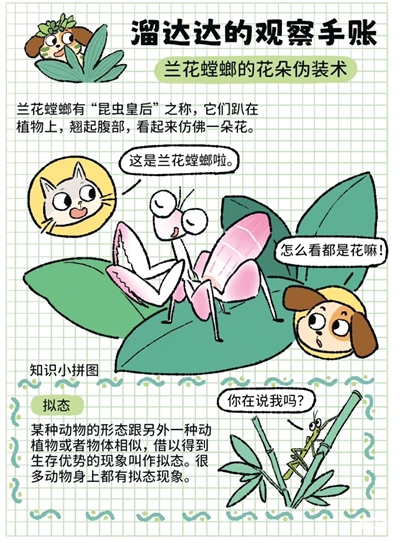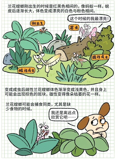 原来呀,这根本不是什么小花,而是兰花螳螂!本漫画摘自小红书@溜达达在观察