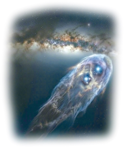 这对星团是从哪里来的?科研人员给出的答案是它们诞生自一种长期被认为是“生命禁区”的星际物质——高速云。高速云是一团巨大的外来气体,以极高的速度撞向银河系星盘边缘。长期以来,天文学家在这些云团里只能看到气体,从未见过恒星的影子。但这一次,当这股气流与银河系猛烈相撞时,巨大的冲击力将气体极度压缩,并在高速气体内部发生碰撞挤压,奇迹般地诞生了新生的恒星。这是人类第一次在这种高速度气体中,找到恒星诞生的证据。